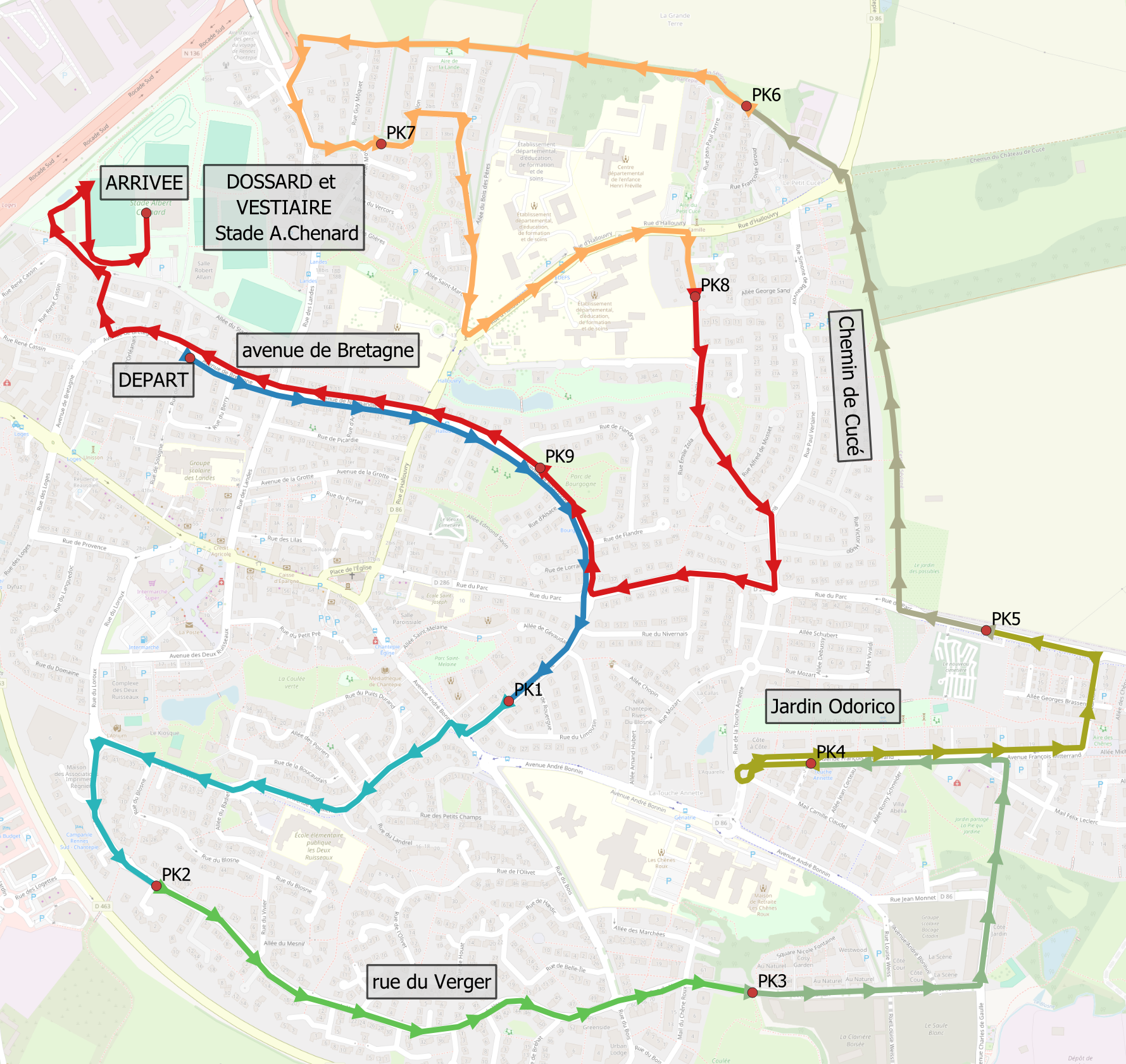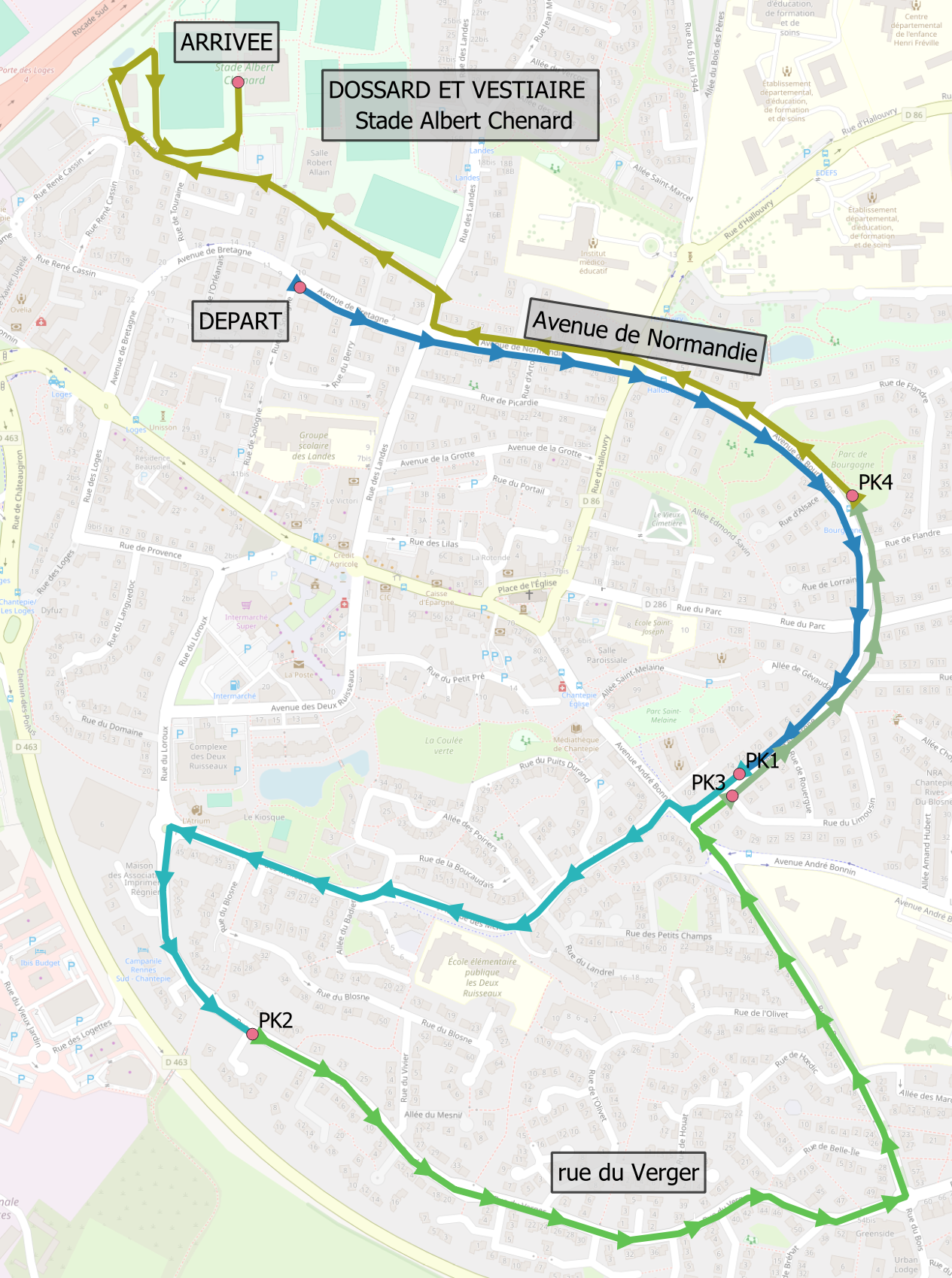 Tous les départs seront donnés dans le stade Albert Chenard au niveau de la piste