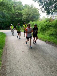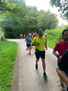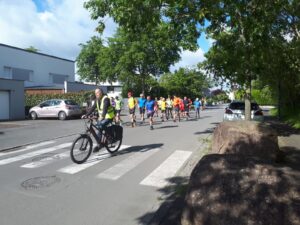 Afin de découvrir le nouveau parcours de 10 km, la sortie de dimanche dernier était consacrée à ce nouveau circuit. Encadrés par 2 vélos et des bénévoles du bureau, une quarantaine de personnes ont pu, toutes ensembles, parcourir les 10 km tout pile mêlant routes et chemins de Chantepie.